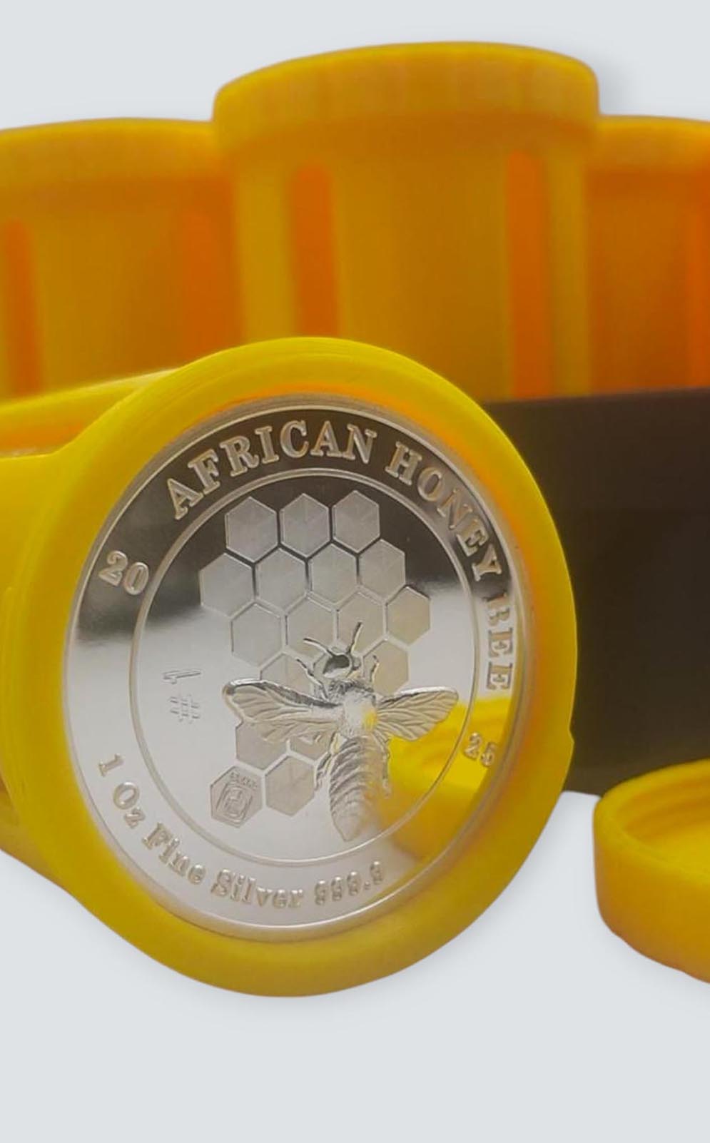 Locally manufactured in Gauteng, this beautifully struck medallion is crafted from 1 troy ounce of .999 fine silver. Featuring an African honeybee design, it combines meaningful artistry with real, tangible value. Its worth is directly linked to the live spot price of silver, making it ideal for collectors, investors, or as a distinctive gift with lasting intrinsic value.
