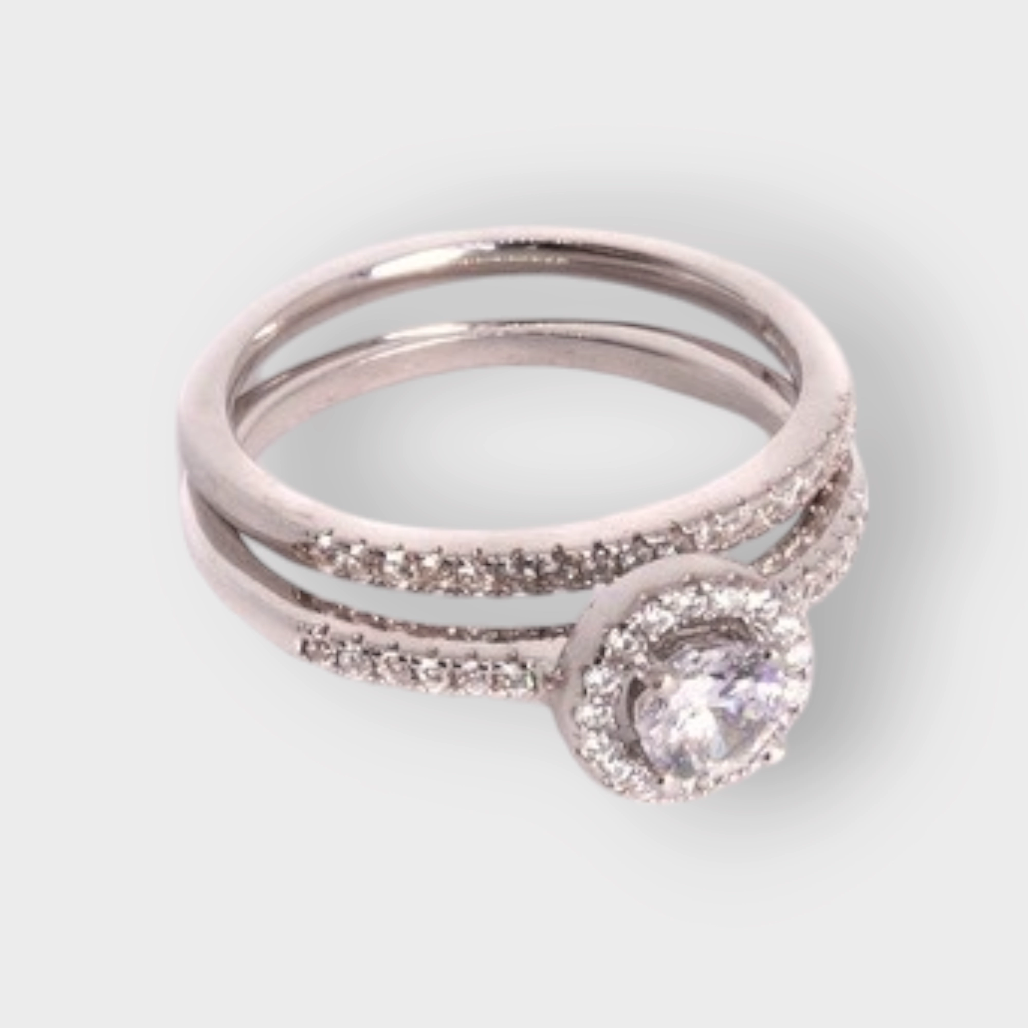 Big Square Studded Cubic Zirconia 2 Piece Sterling Silver Ladies Ring & Band