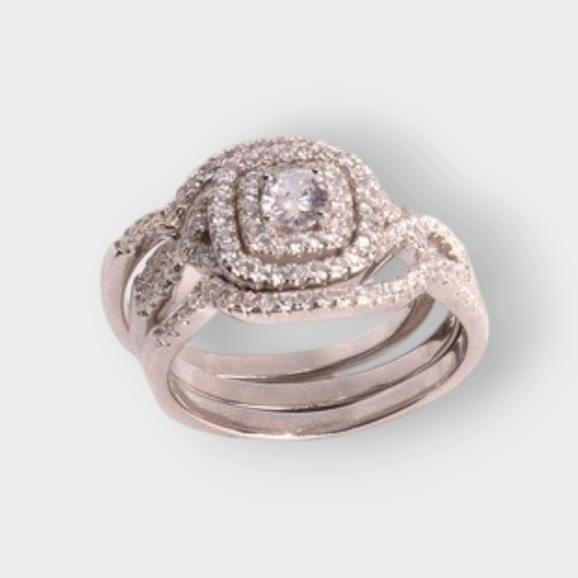 2 Piece Small Round Cubic Zirconia Studded Ladies Engagement Ring & Band