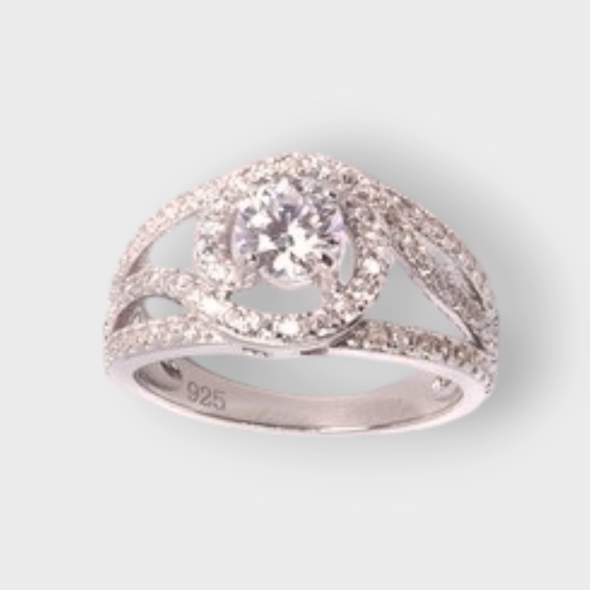 2 Hearts 925 Sterling Silver with Cubic Zirconia Stones Ladies Ring