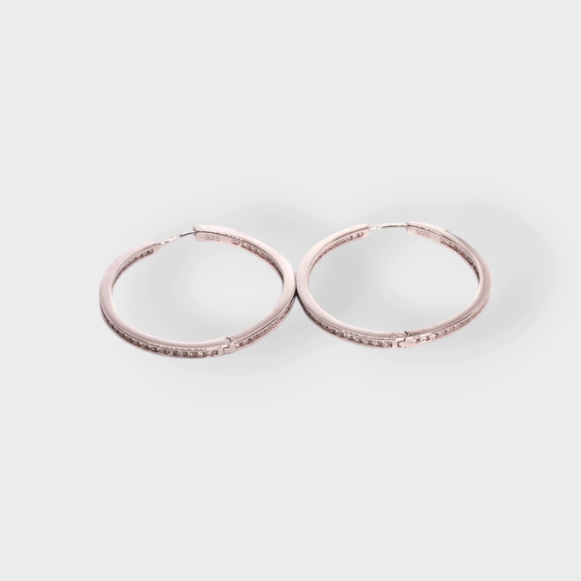 Big Round Cubic Zirconia Loop Sterling Silver Earrings